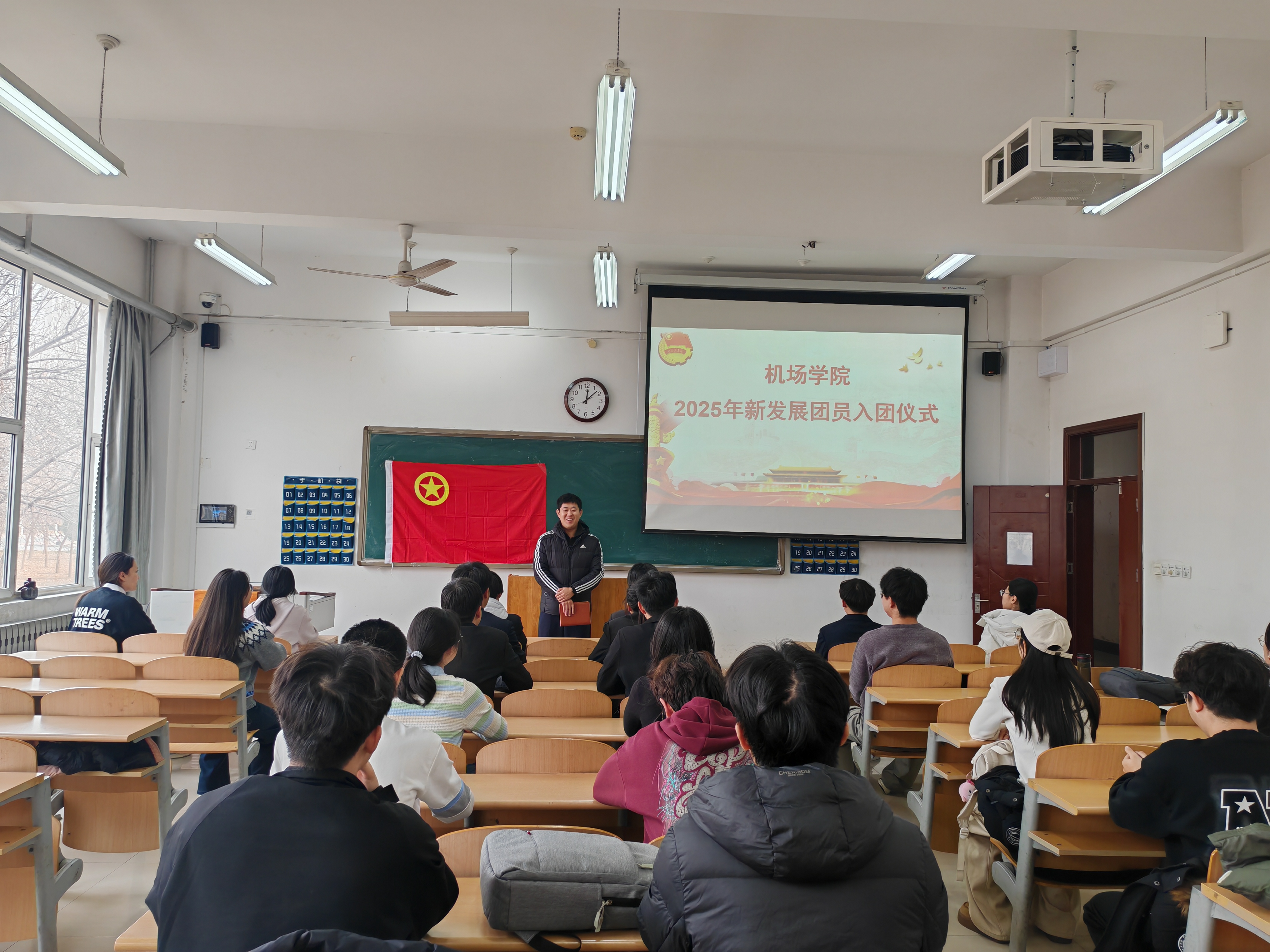 为进一步加强共青团组织建设,增强青年团员的责任感与使命感,11月24日,机场学院各班团支部于8教举行2025年新发展团员入团仪式,各班团员全员参与。
