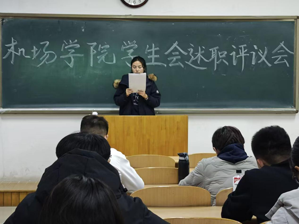 为全面总结学生会阶段性工作成效,规范学生组织运行机制,强化学生干部责任担当,2025年12月2日,机场学院学生会在8教311教室召开述职评议大会。本次大会由机场学院团总支统筹组织,学院团总支全体成员和学生会全体成员参会。