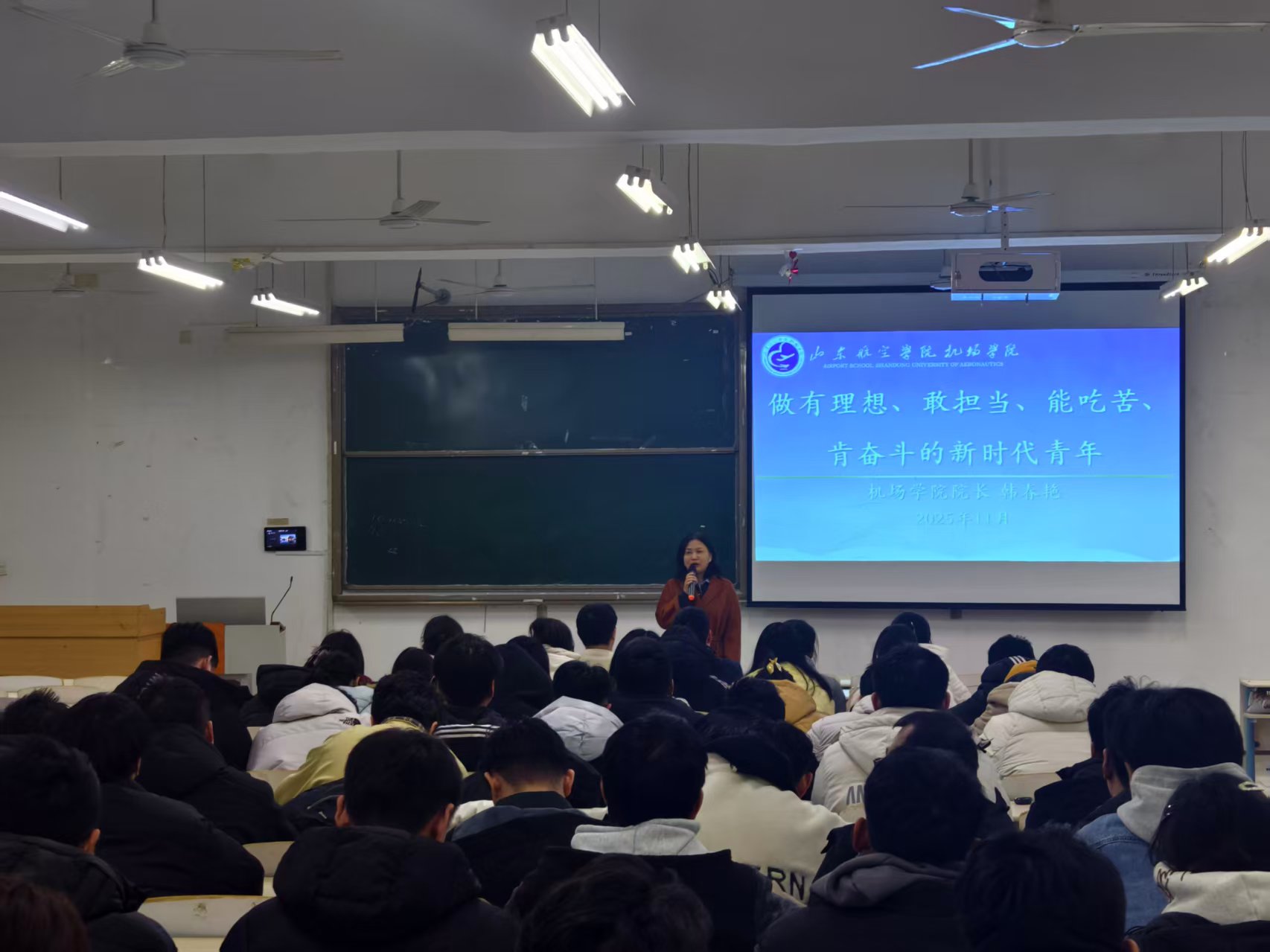 毕业在即,为引导2026届毕业生锚定人生方向、勇担时代使命,2025年12月21日晚,机场学院院长以“做有理想、敢担当、能吃苦、肯奋斗的新时代青年”为主题,为全体2026届毕业生作思想政治教育报告。年级辅导员及全体2026届毕业生参会。此次报告作为毕业生离校教育的关键环节,旨在以思想引领为毕业生顺利开启人生新征程筑牢根基。