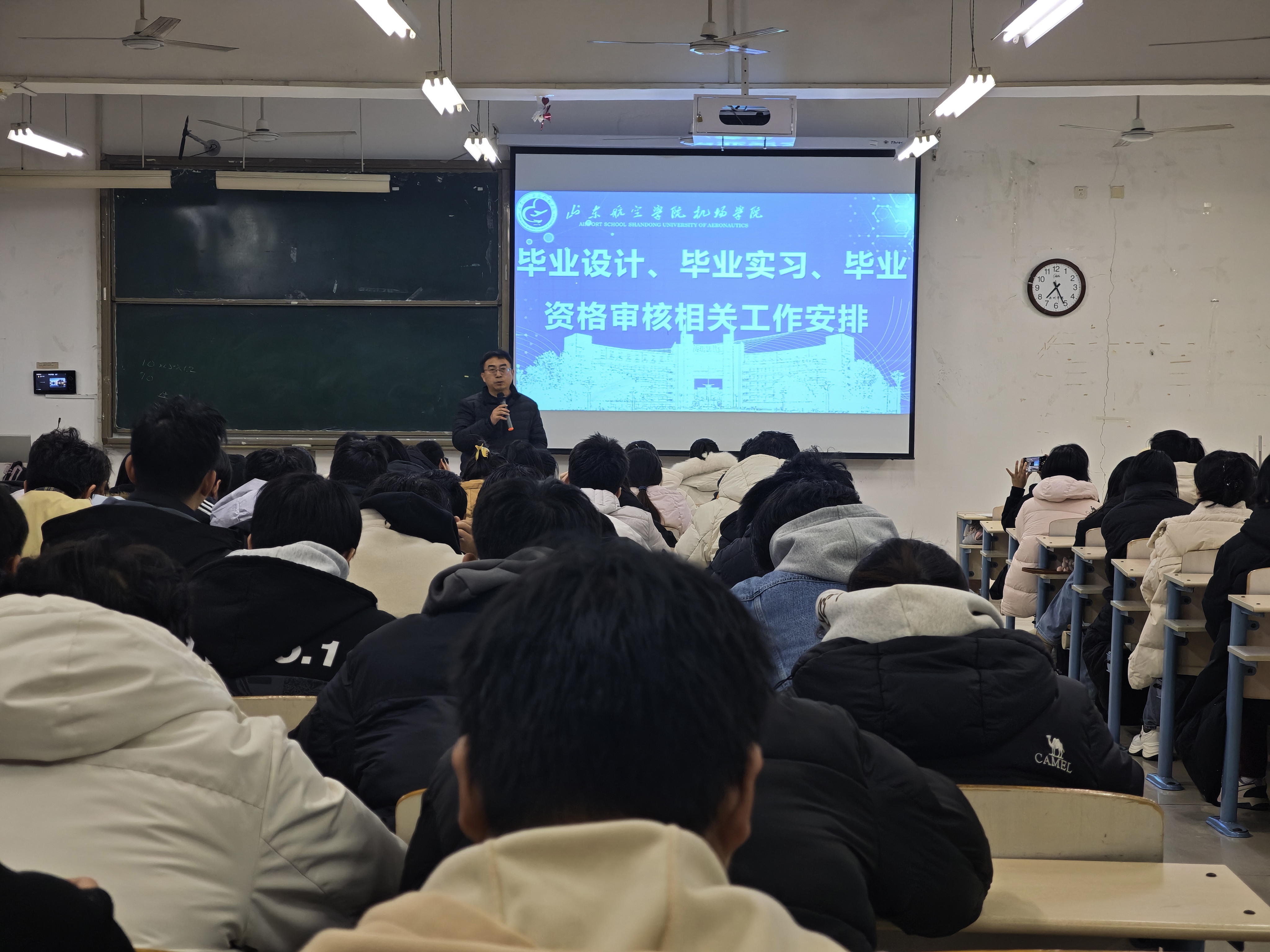为落实立德树人根本任务,统筹抓好毕业生学业收尾、就业指导等重点工作,教育引导毕业生树立远大理想,强化责任担当意识。12月21日,机场学院于工科楼2-112教室召开2026届毕业生年级大会,学校武装部征兵工作宣传人员、年级辅导员、教研秘书以及2026届全体毕业生参加会议。