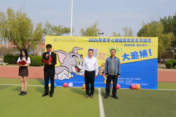为深入落实新时代高校心理健康教育工作要求,丰富校园文化生活,引导学生走出宿舍、走向户外,有效缓解心理压力、锤炼身心素质、增进团队协作,4月14日下午,山东航空学院2026年春季心理健康教育“暖春!猫鼠?大追捕!”户外互动挑战赛在校园内顺利举行。本次活动由学生工作处(武装部)主办,机场学院、大学生心理健康教育与咨询中心联合承办。机场学院党委书记、学生工作处(武装部)副处长出席活动,来自全校各二级学院的19支代表队同台竞技、踊跃参与。